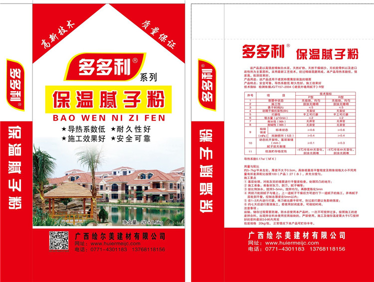 郵箱:[email protected]廣西繪爾美建材有限公司是集研發(fā)、生產(chǎn)、營銷、技術(shù)服務(wù)等為一體的綜合型企業(yè)。目前主要以生產(chǎn)各種內(nèi)外墻膩?zhàn)臃?、耐水膩?zhàn)臃邸⑼鈮θ嵝阅佔(zhàn)臃?、聚合物砂漿、聚苯顆粒砂漿、?;⒅樯皾{、珍珠巖砂漿、瓷磚粘結(jié)劑、粉刷石膏。瓷磚粘結(jié)劑等建筑保溫干粉材料等產(chǎn)品,同時(shí)營銷各種國內(nèi)外優(yōu)質(zhì)建筑原材料,憑借多年的技術(shù)積累和銷售經(jīng)驗(yàn)為廣大客戶提供完善的生產(chǎn)、施工環(huán)節(jié)技術(shù)指導(dǎo)等全方位服務(wù)。 繪爾美主營內(nèi)外墻膩?zhàn)臃?、聚合?...[詳細(xì)內(nèi)容]